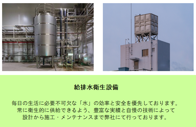 主に給排水衛生設備の設計・施工事業をはじめとし、浄化槽・下水道の施工などを展開しております。