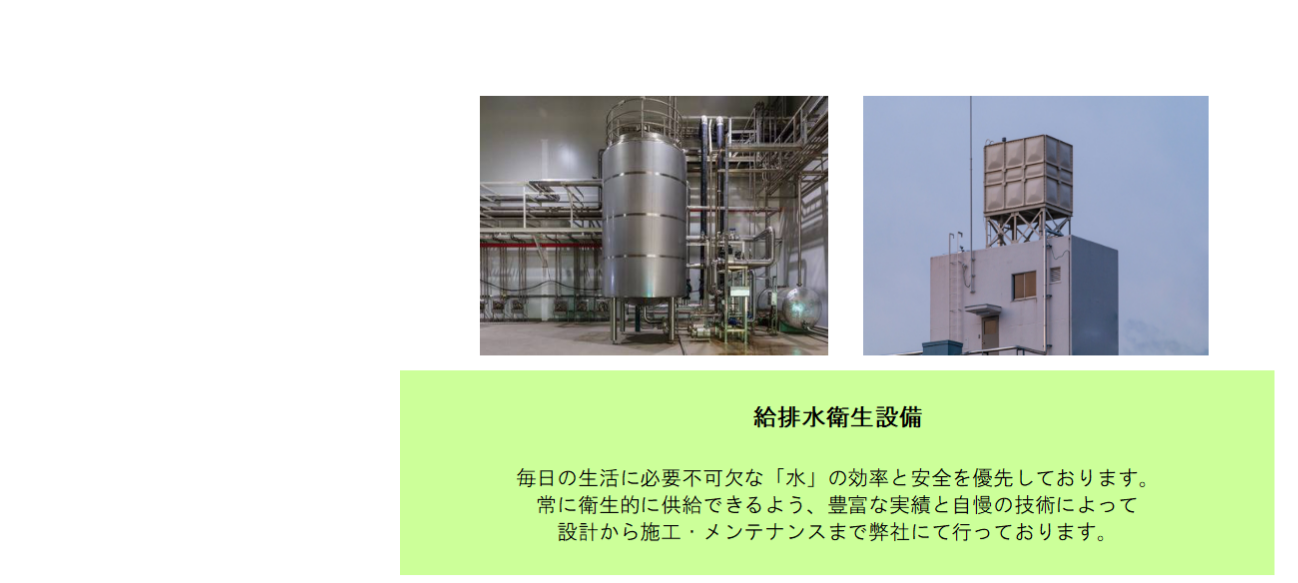 主に給排水衛生設備の設計・施工事業をはじめとし、浄化槽・下水道の施工などを展開しております。